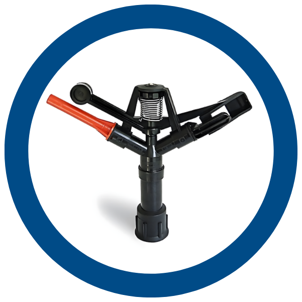 - Aspersores de impacto – ideais para grandes áreas agrícolas