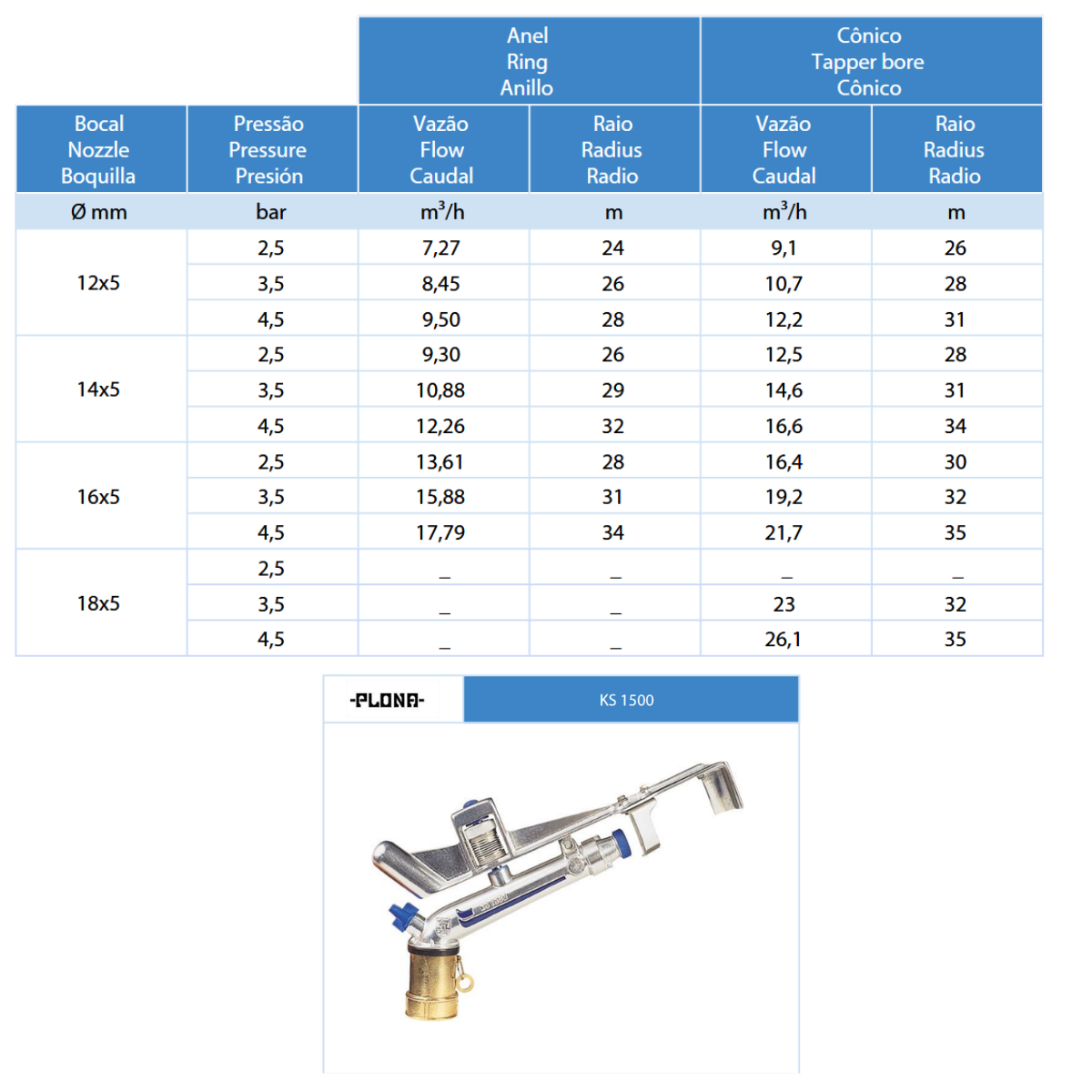 💧 1 unidade do Mini Canhão Plona KS 1500 para irrigação agrícola.