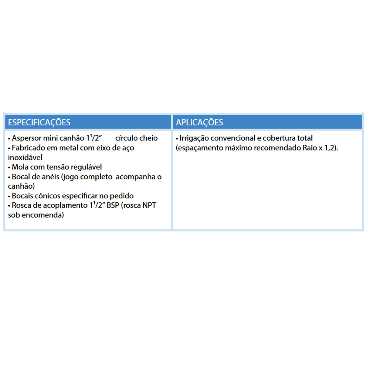 • Aspersor mini canhão 1.1/2” círculo cheio