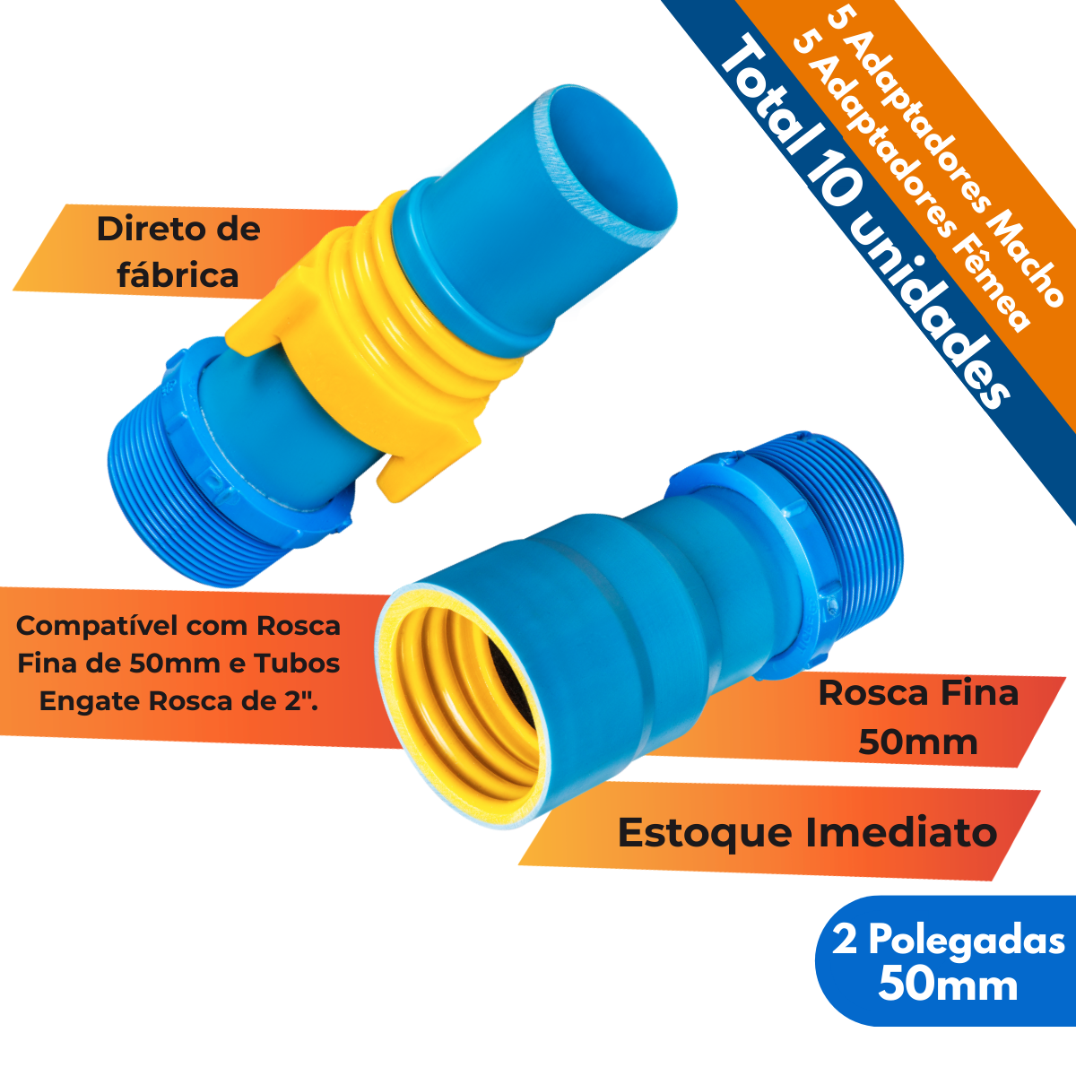 💧 5 unidades do Adaptador Fêmea 2″ 50mm irrigação agrícola, engate rosca.