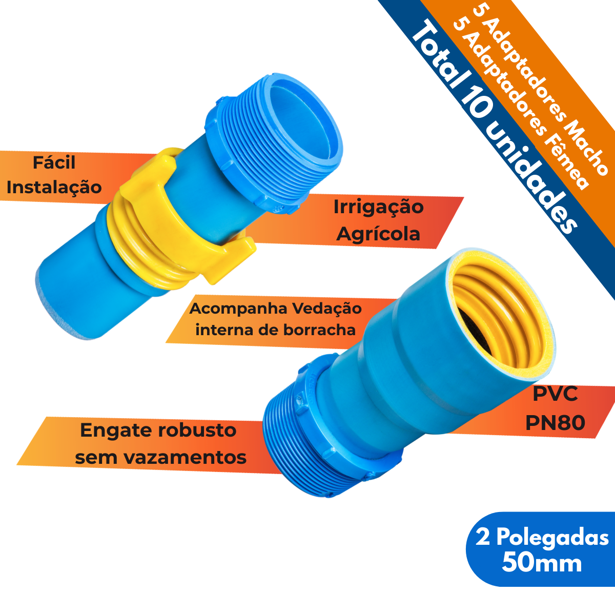 💧 5 unidades do Adaptador Macho 2″ 50mm irrigação agrícola, engate rosca.
