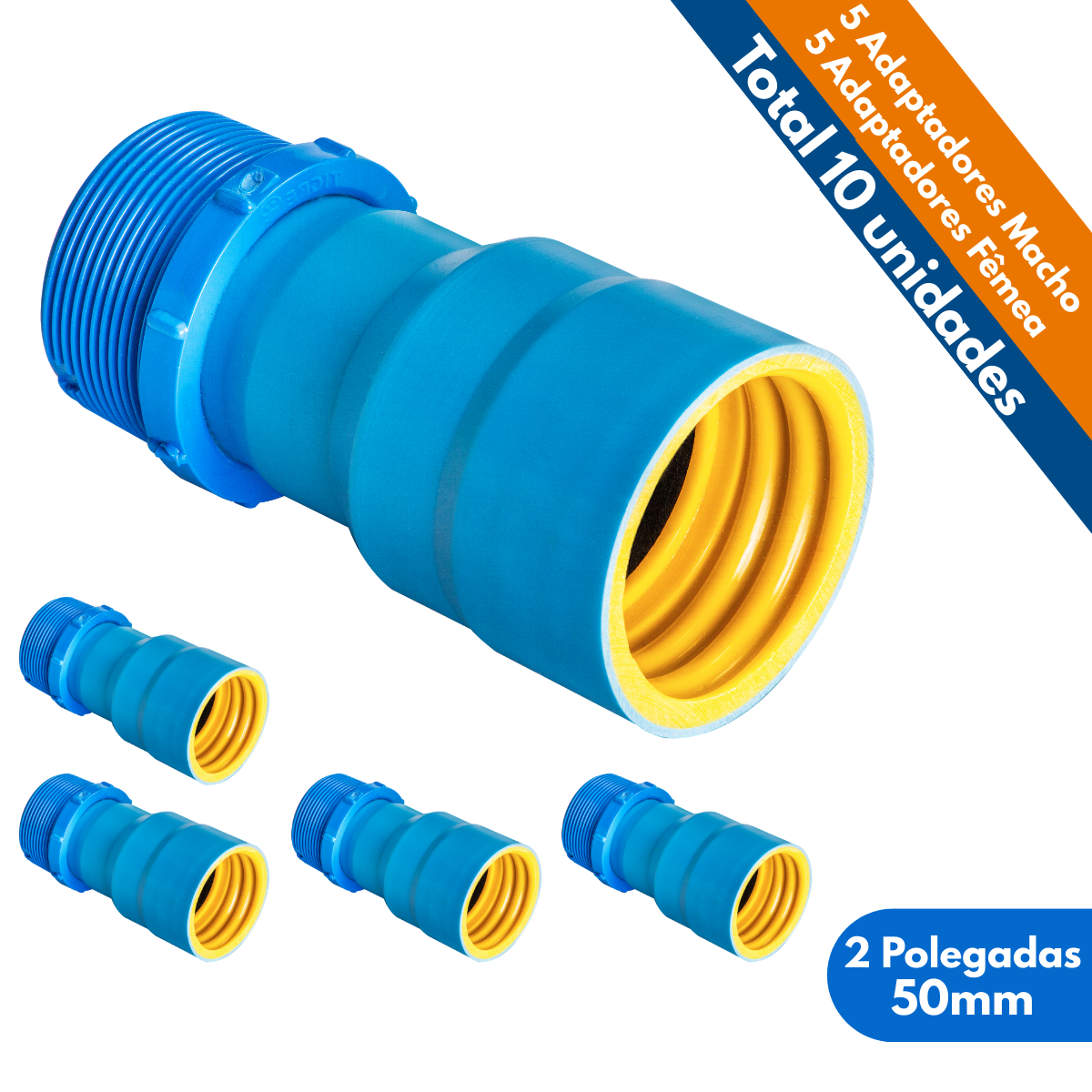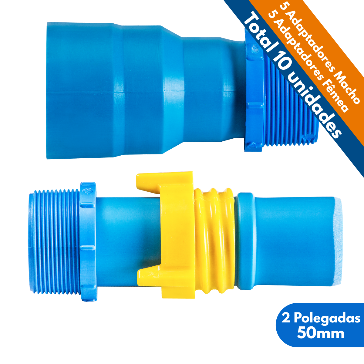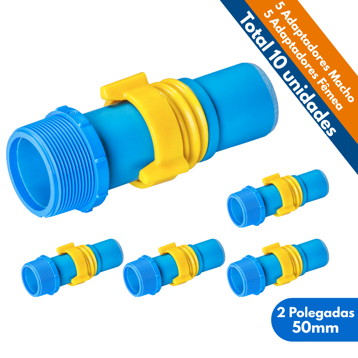 Kit 10un Adaptador Ponta Macho e Fêmea 2″ 50mm Irrigação Tubo PVC Engate Rosca