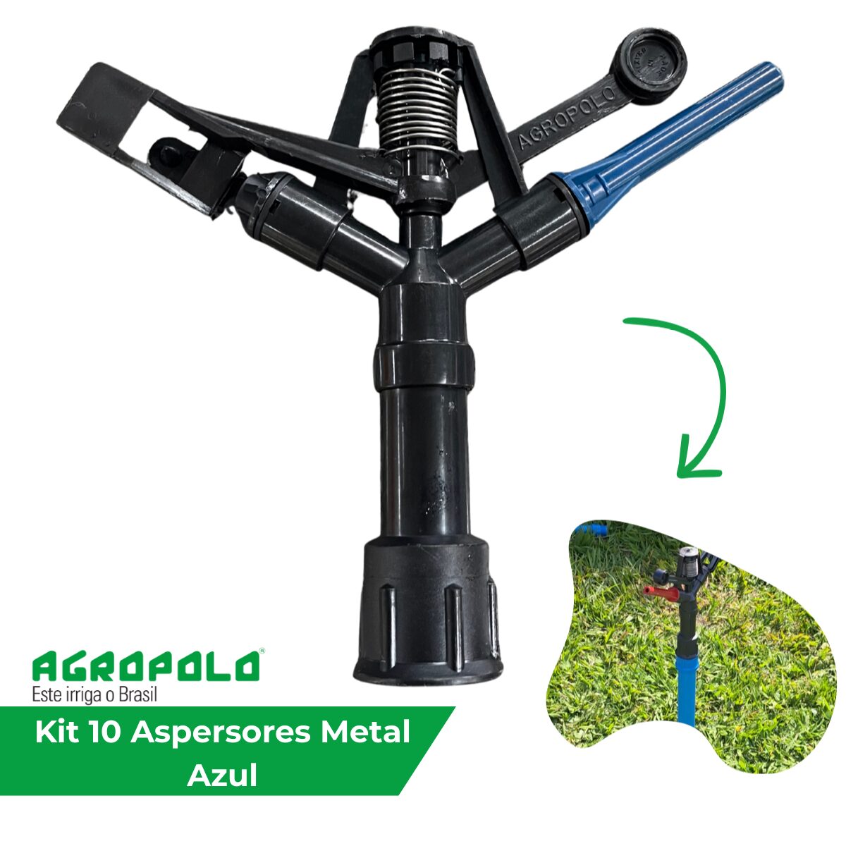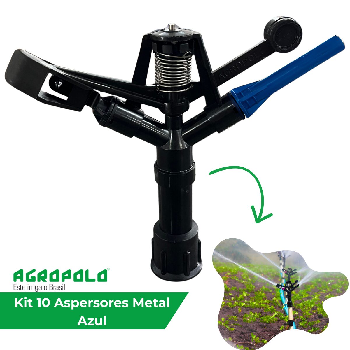 Kit 10un Aspersor Agropolo NY30 Azul 7,10mm Eixo Metal 1 Polegada
