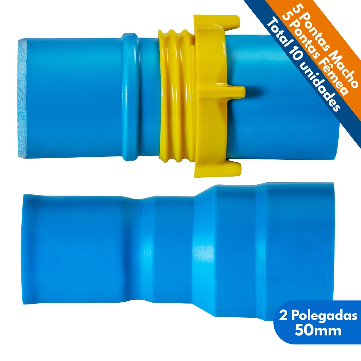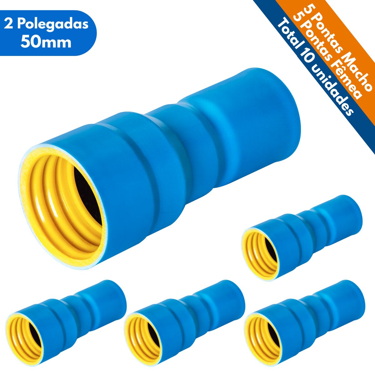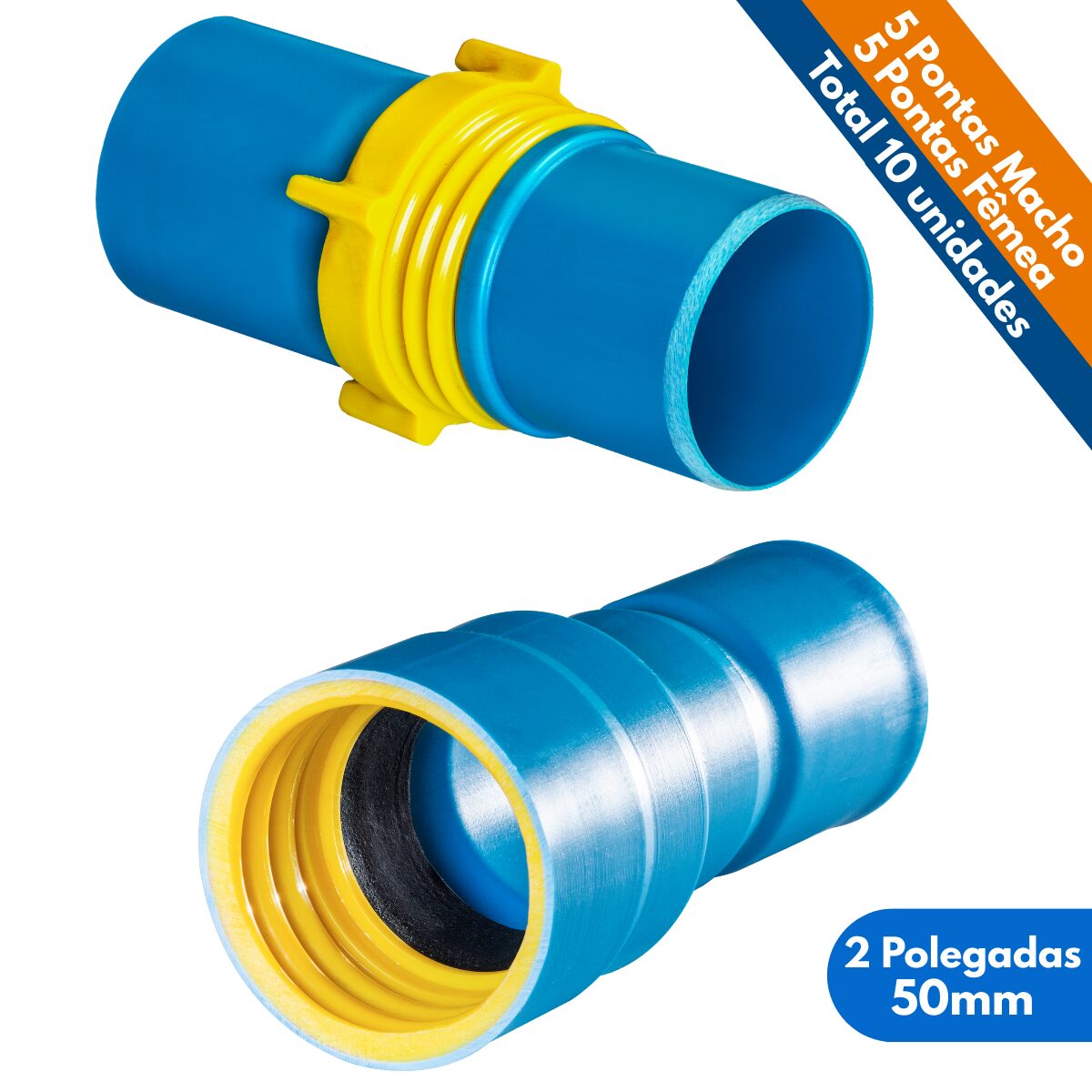 Kit 10un Ponta Femea e Macho 2 Polegadas Tubo 50mm PVC Irrigação
