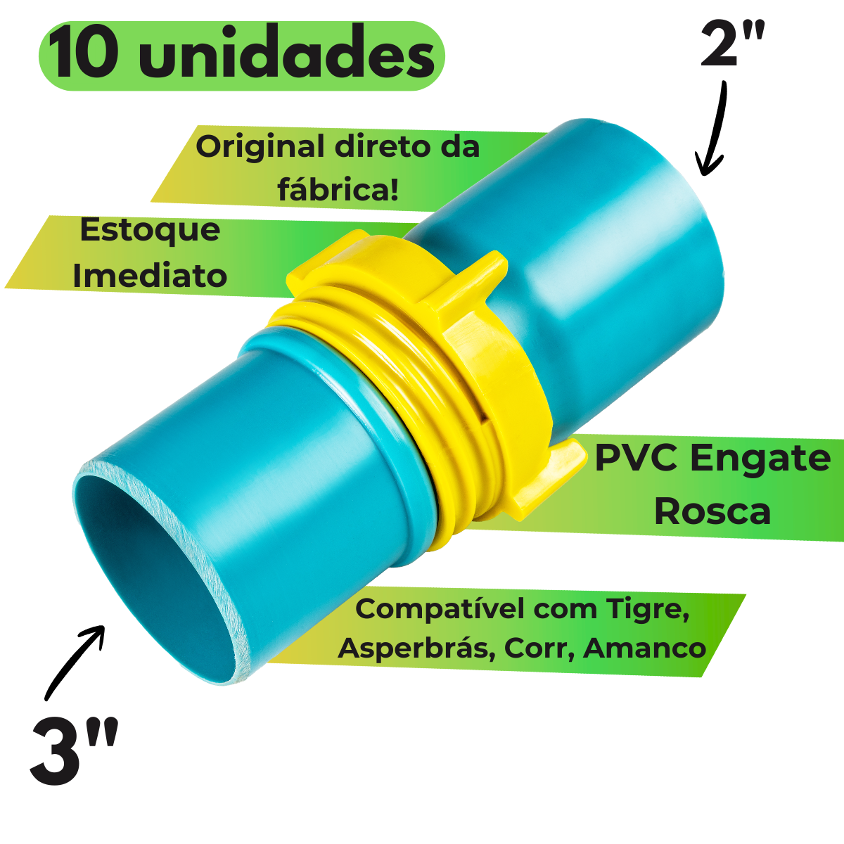 💧 10 Unidades Redução 3″ x 2″ Engate Rosca – 75mm x 50mm.