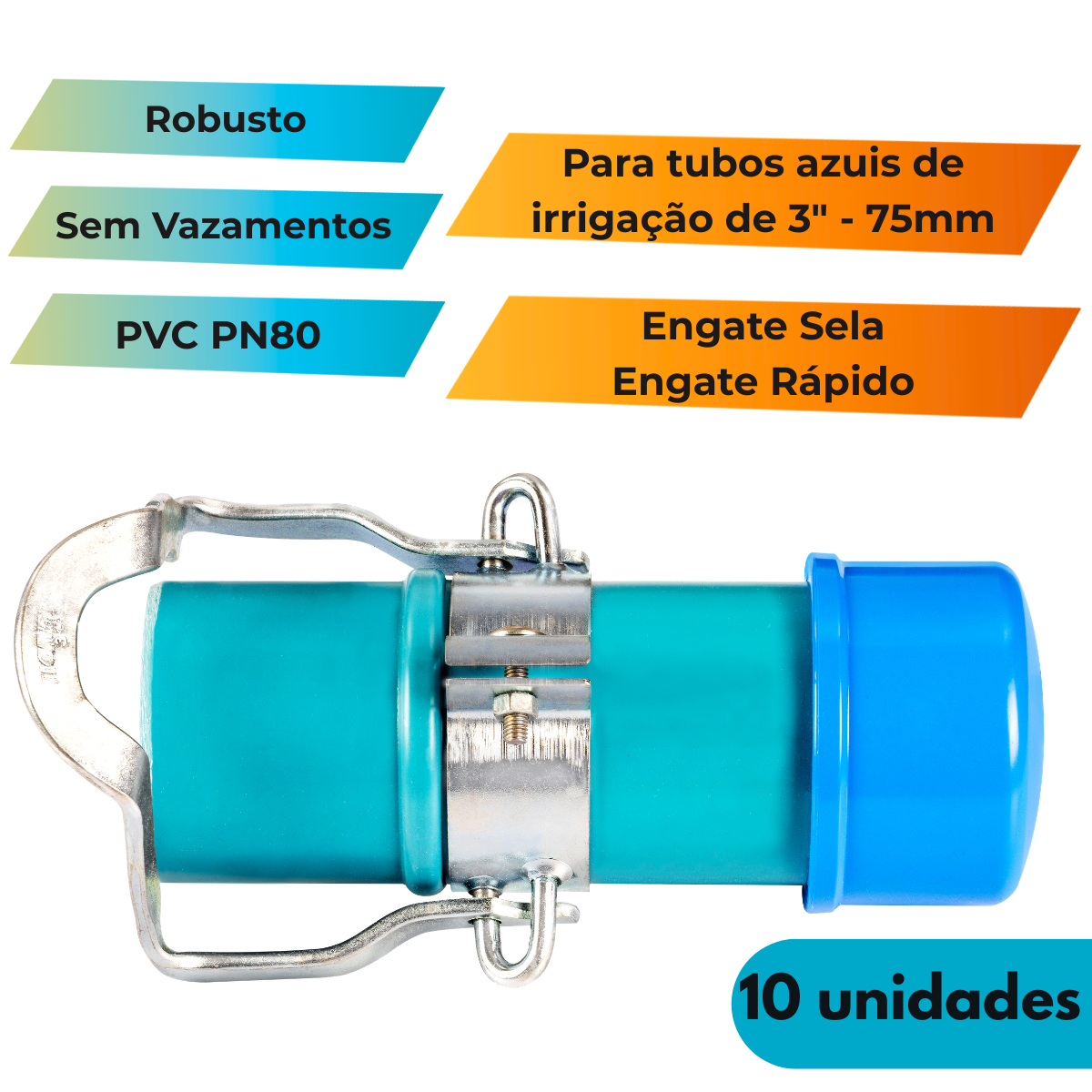 Kit 10un Tampão Cap Macho 3″ Engate Rápido Tubo PVC 75mm Irrigação Engate Sela