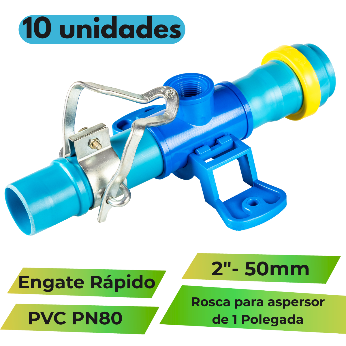 💧 10 unidades Tê Saída de Aspersor ES 2″ x 1″ | Tubo 50mm PVC Engate Rápido | Engate Sela