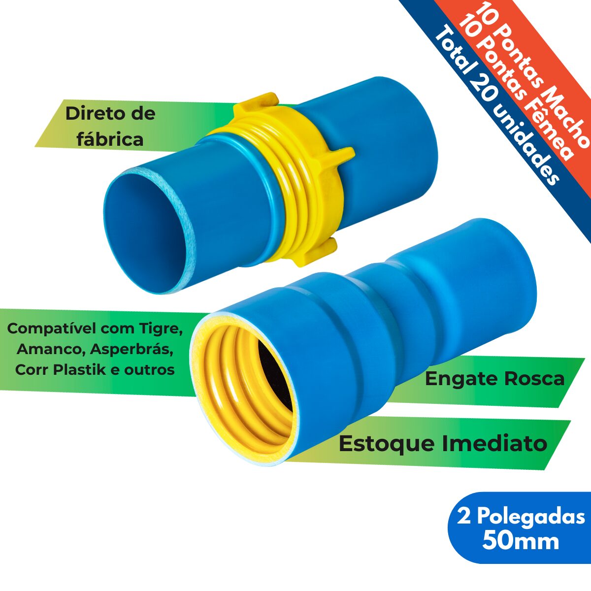 💧 10 Unidades Ponta Fêmea Engate Rosca EP 2″ – 50mm.