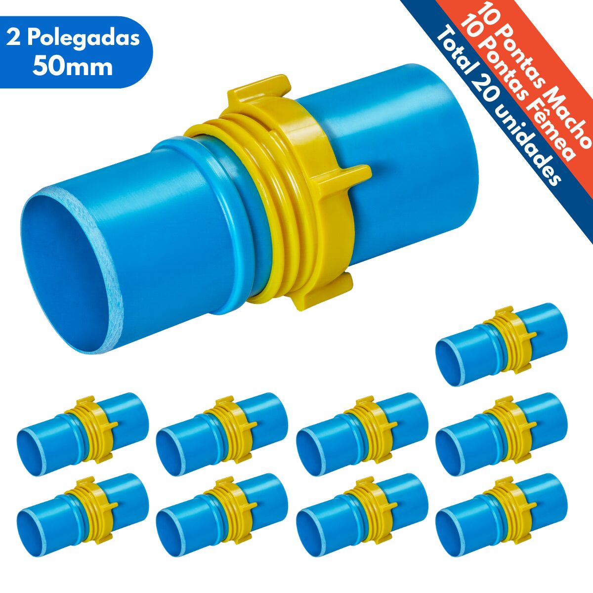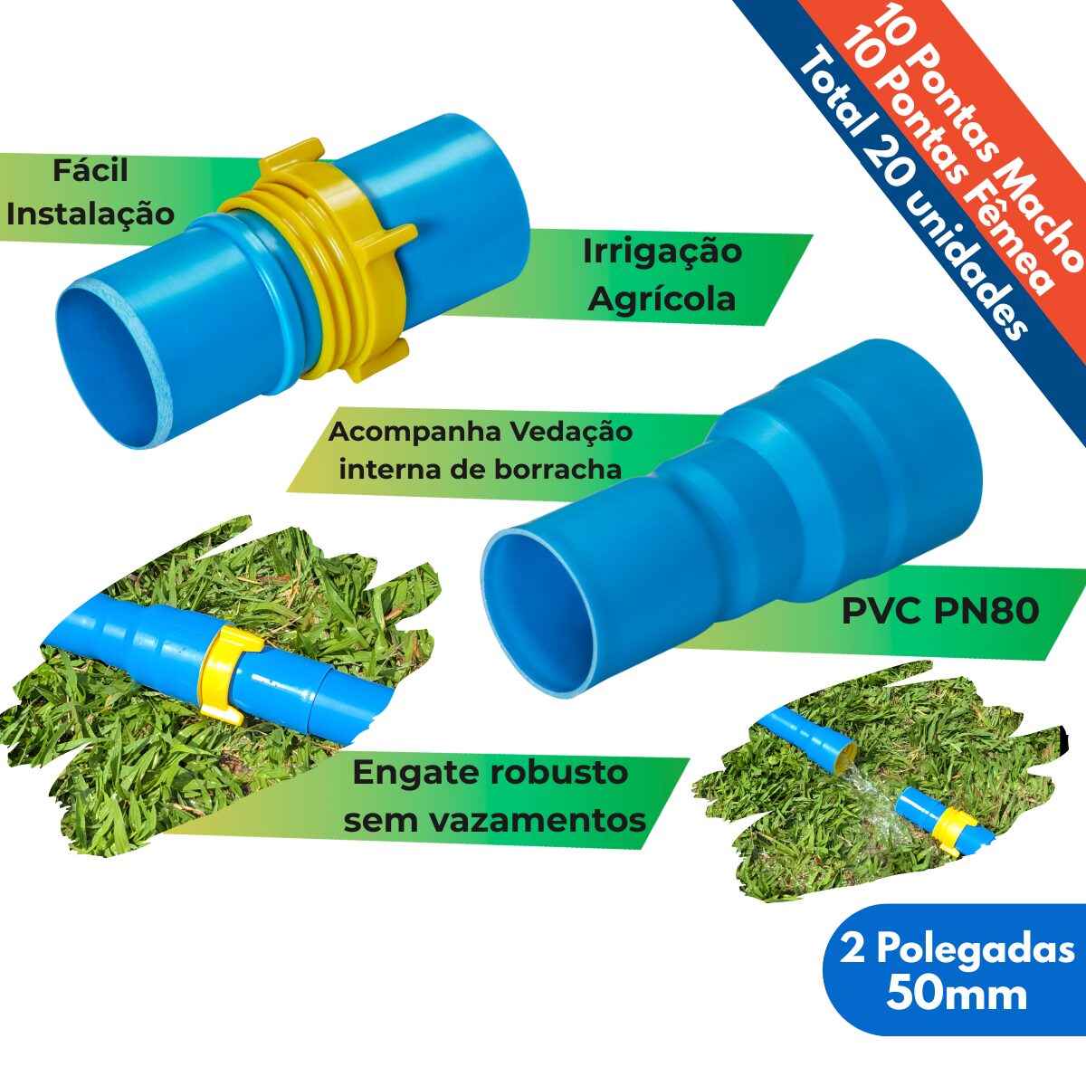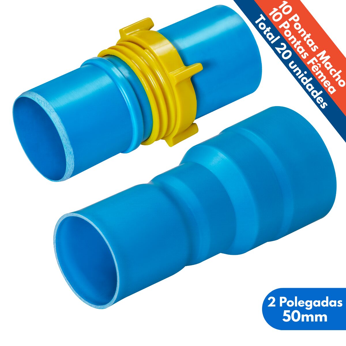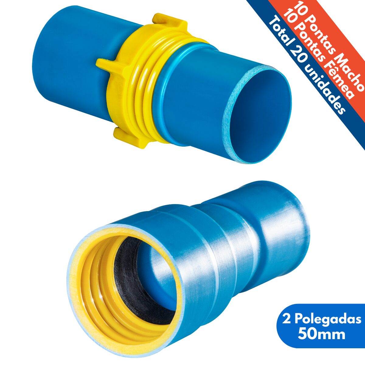 Kit 20un Ponta Femea e Macho 2 Polegadas Tubo 50mm PVC Irrigação