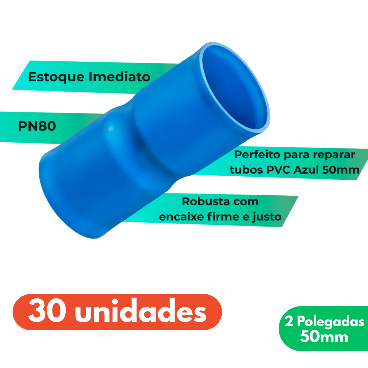 💧 30 Unidades da Luva Cola Soldável 2″ – 50mm – Para PVC Azul.