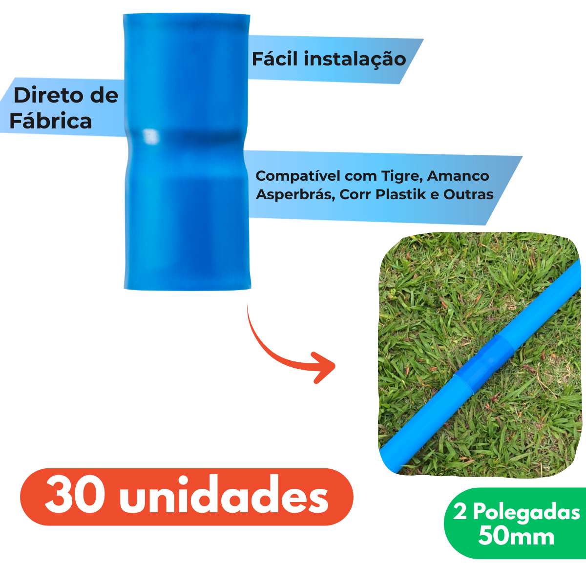 Kit 30un Luva Soldável 2″ – 50mm Tubo Cola PVC Irrigação LF