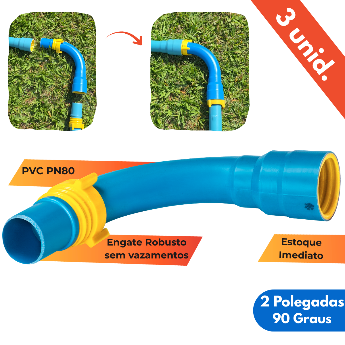 💧 3 unidades Curva 2″ x 90º com engate rosca EP para irrigação agrícola.