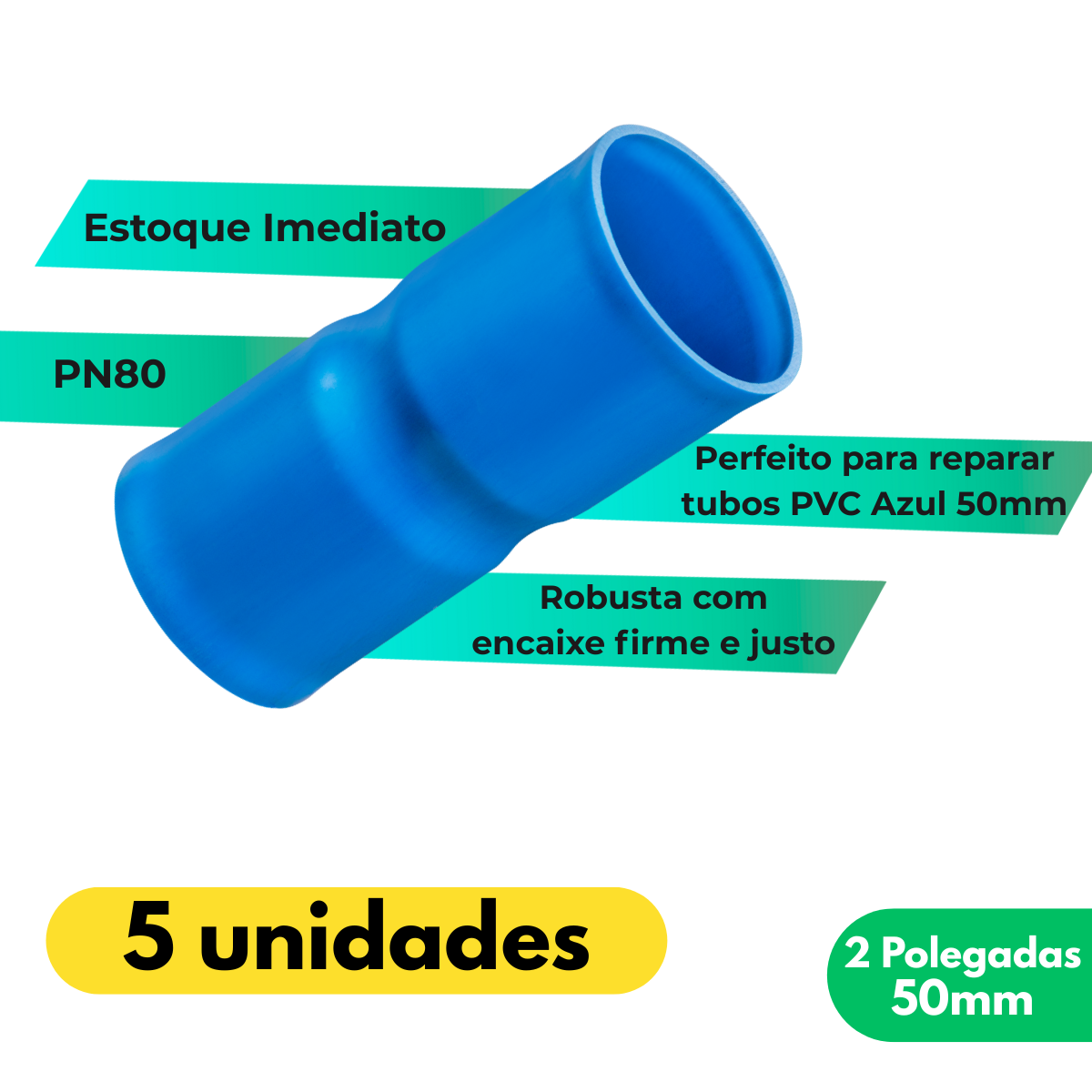 💧 5 Unidades da Luva Cola Soldável 2″ – 50mm – Para PVC Azul.