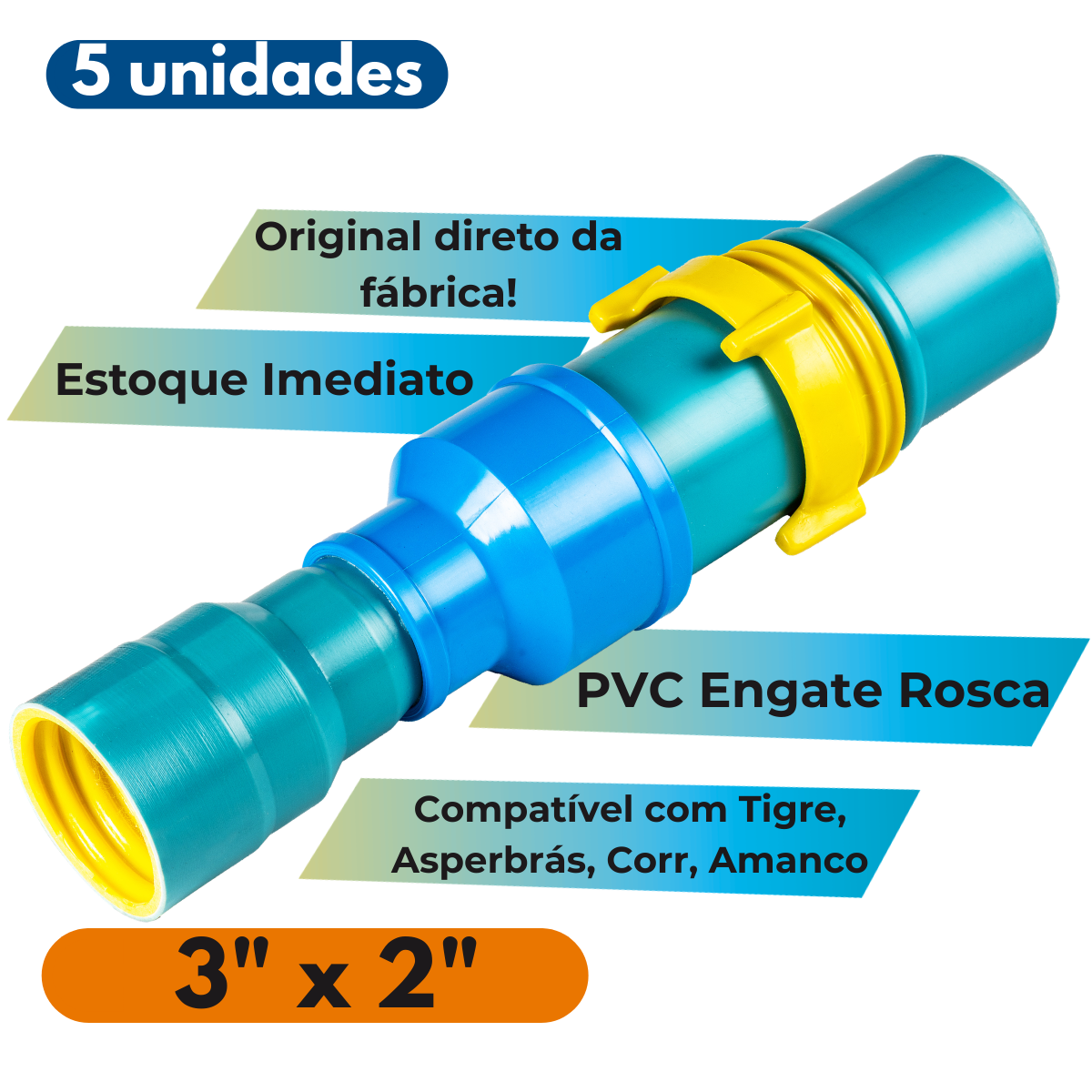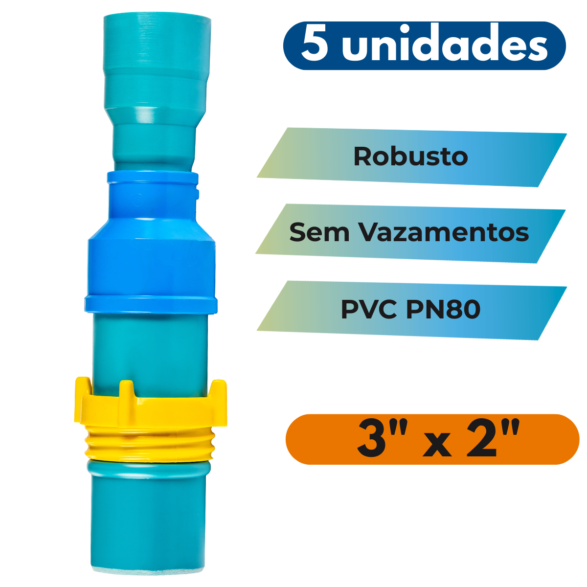 💧 5 Unidades Redução 3″ x 2″ Engate Rosca – 75mm x 50mm.