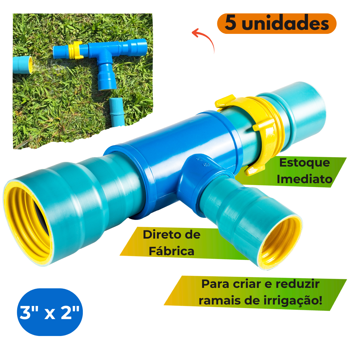💧 5 unidades do Tê Derivação Fêmea 3″ x 2″ – 75mm x 50mm irrigação agrícola.