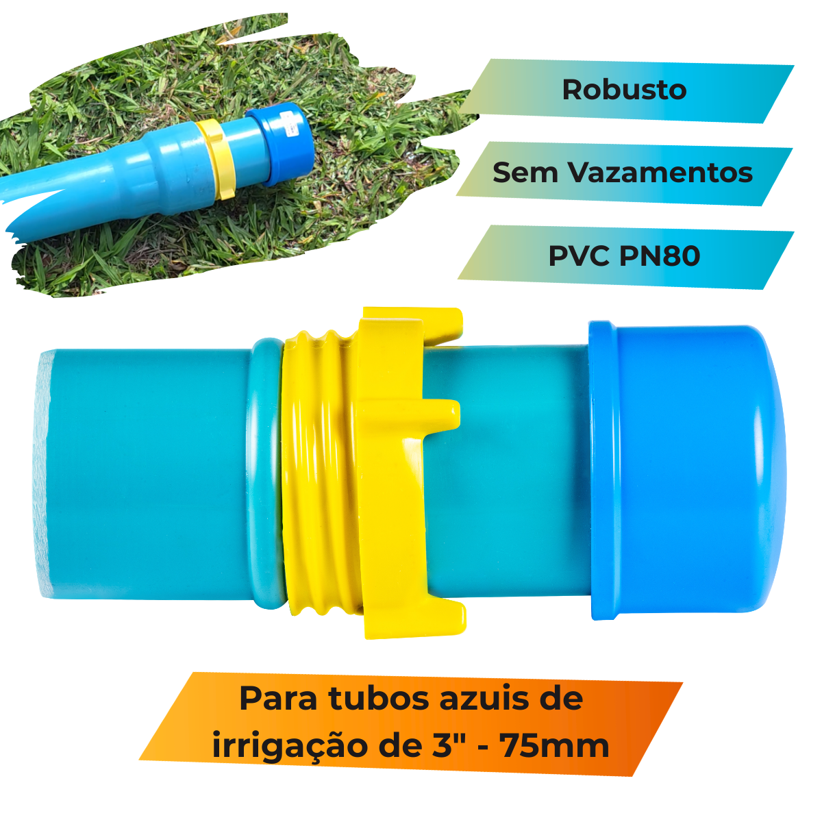 🚜 Compatível com a linha de tubos de irrigação de engate rosca da linha azul.